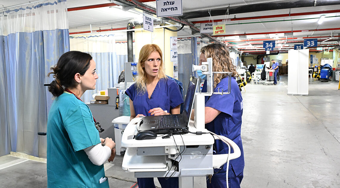 Ben Haim, junto con sus colegas enfermeras, médicos y técnicos, se mueven de cama en cama en una de las 11 unidades de tratamiento de urgencias construidas a toda prisa en el campus del Hospital Hadassah Ein Kerem. Todo espacio considerado seguro, ya sean consultorios médicos, un estacionamiento subterráneo o una sala de espera de quirófano convertida en un espacio para neonatos, se ha transformado en un departamento hospitalario. En el Hospital Hadassah Monte Scopus, además del hospital subterráneo del Centro de Rehabilitación Gandel, también se utilizan espacios subterráneos.